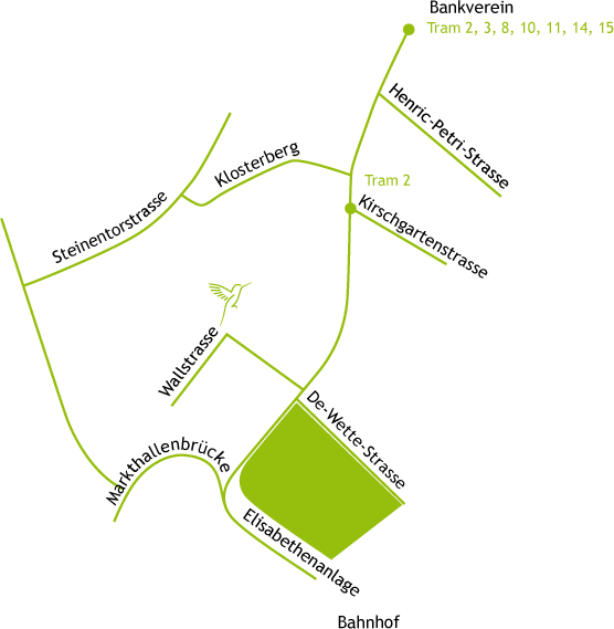 Dank der idealen Lage unseres Nestes, zwischen Bahnhof SBB, Heuwaage und Kirschgarten, sind wir innerhalb drei Minuten von Bahn, Tram, Bus und Parkhaus erreichbar.